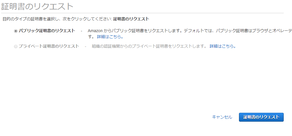 パブリック証明書のリクエストを行います。