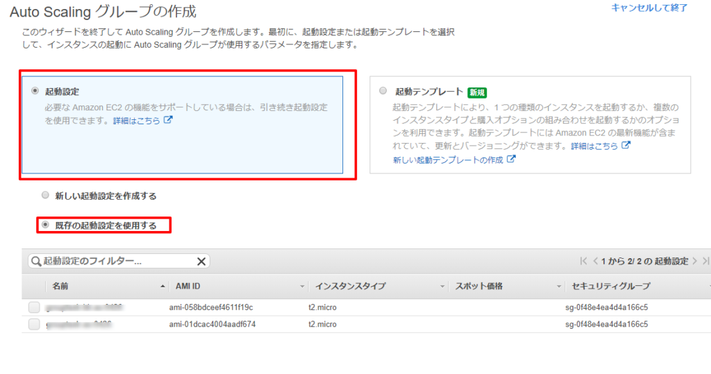 4.auto scalingグループの起動設定を作成する
