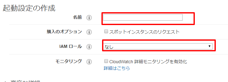 - auto scalingグループの起動設定を作成する
